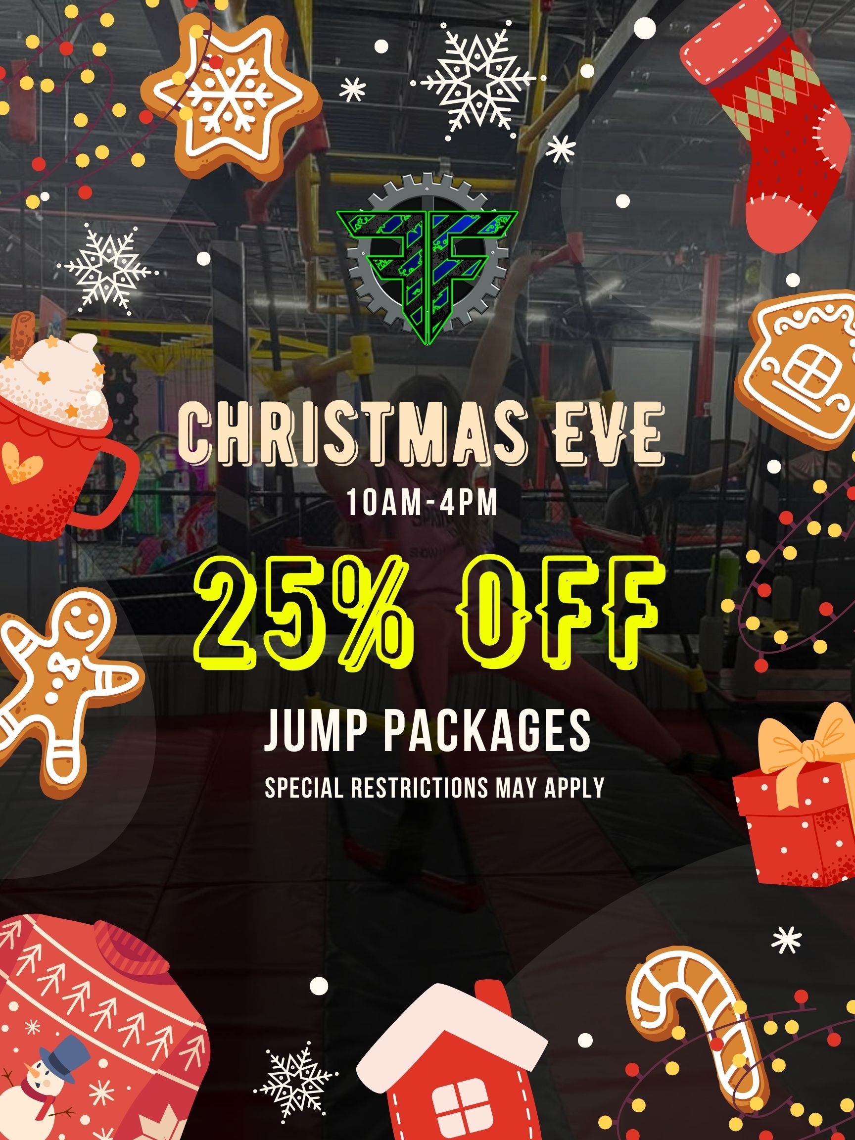 Come visit Gainesville Florida’s Premier Family Entertainment Park Our multi-level trampoline deck has features for guests of all ages. Don’t feel like jumping on trampolines? We have 60+ arcade games with prize redemption, a two-story Laser Tag arena, Indoor Roller Coaster, 6 Rock Climbing Walls, the New Leap of Faith, 4 Story Indoor Jungle Gym and Bumper Cars are here! We have something for the entire family Get hungry? We also have full services café with everything from snacks to meals. We also hosts Fundraisers, Group events, Team building, Summer Camp and even Birthday Parties!!!!!